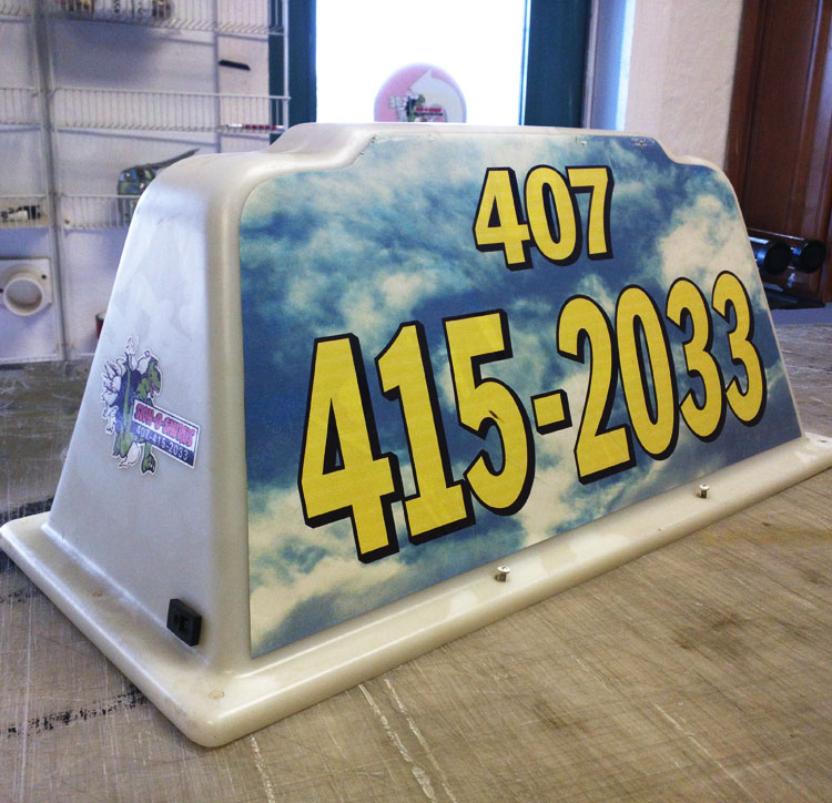 Vehicle Toppers are usually seen on pizza delivery vehicles. However, they are available to be customized with your company information and they are a unique way to get people to recognize your business. These can be especially effective in conjunction with the other types of vehicle advertising we offer.